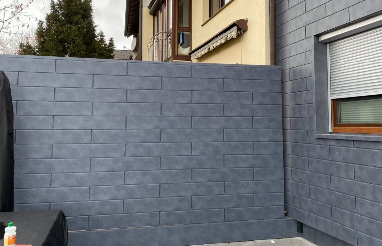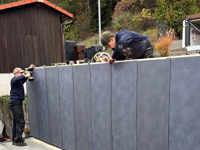 Fachgerechte Montage von Fassadenpaneelen mit langlebiger Metalloptik – ideal für Witterungsschutz und ein modernes Erscheinungsbild.